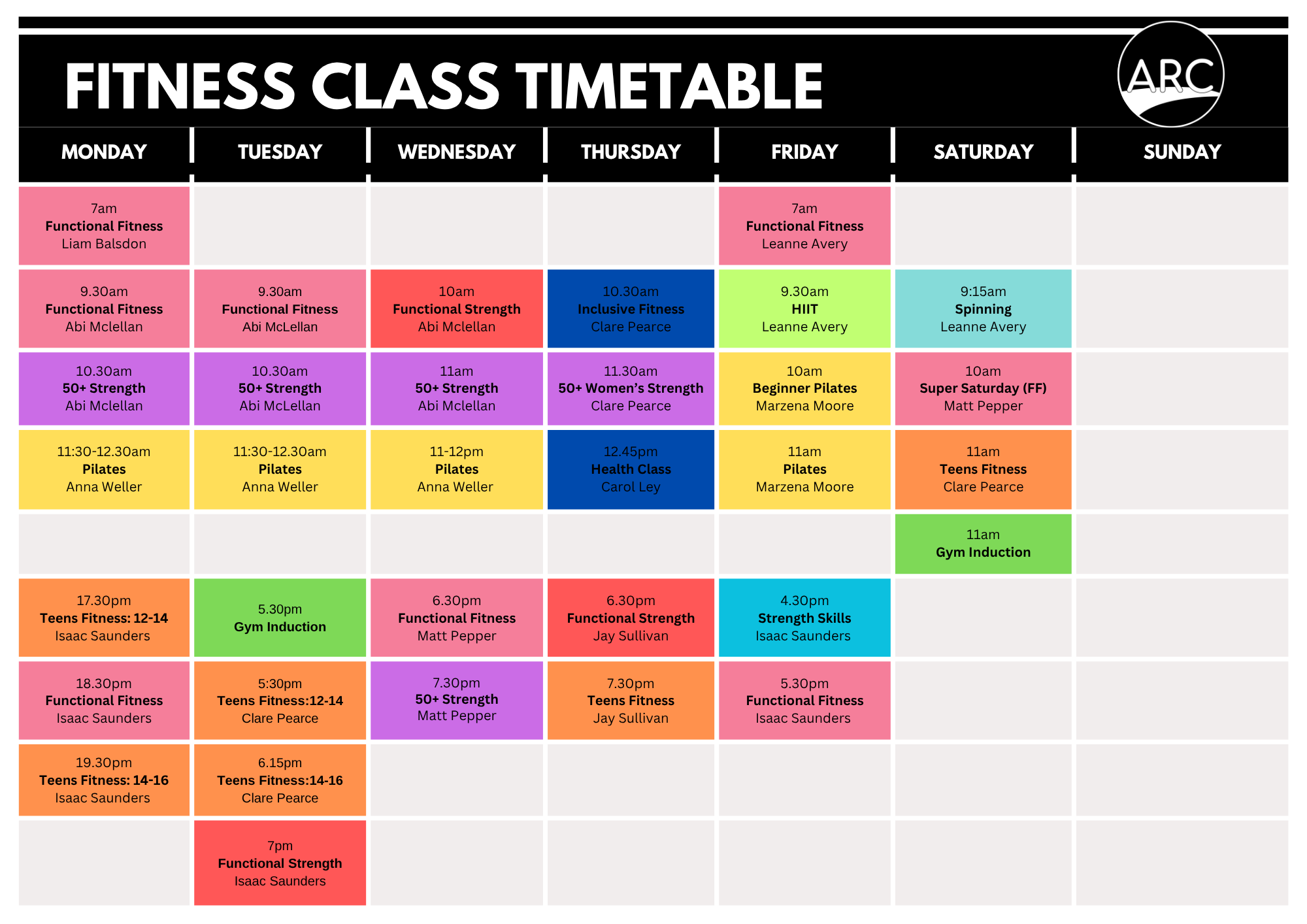Our ARC Fitness Classes are all led by our fantastic and highly qualified coaching team. We offer a variety of options to suit all your fitness goals, and all our classes are scalable to suit any age, fitness level or ability. If you are not sure what classes are right for you, get in touch and we will be happy to help!